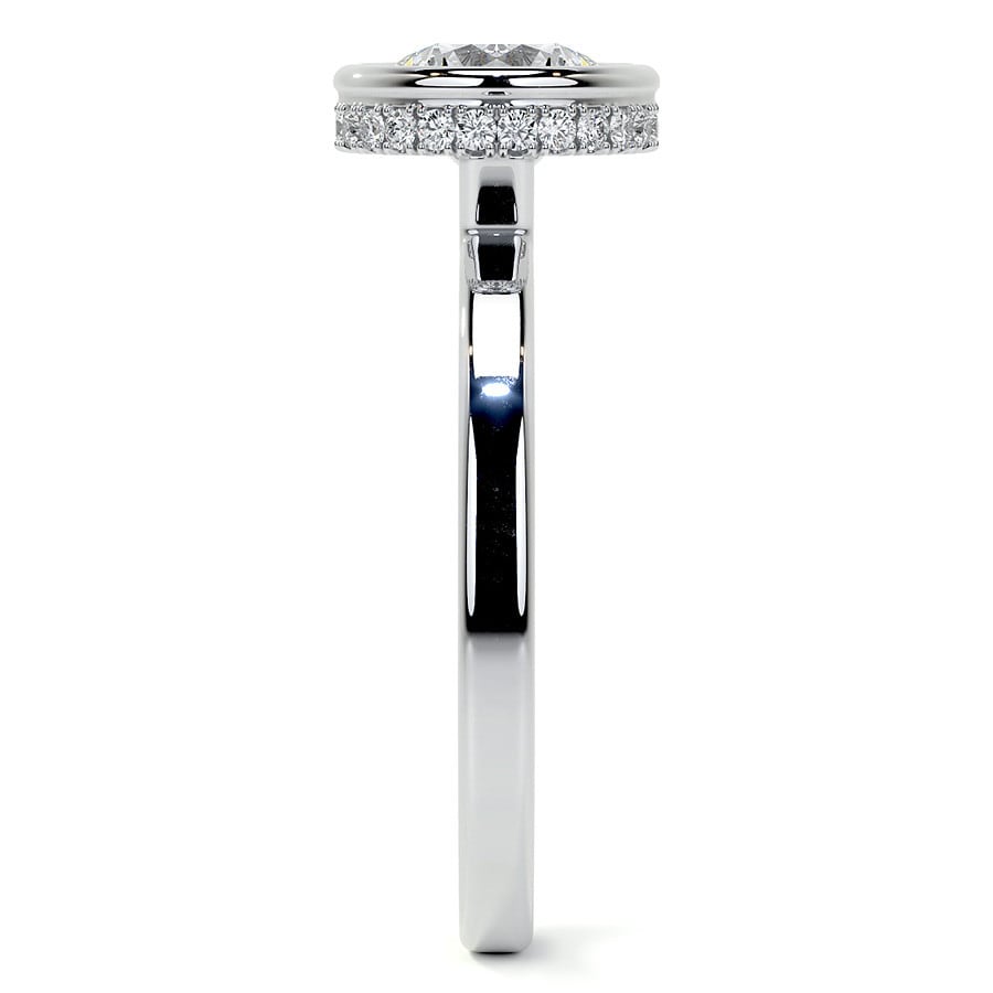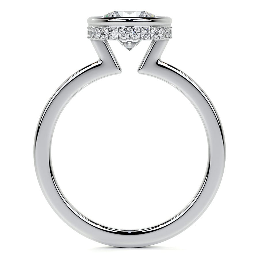 Bezel Set Round Brilliant Lab Grown Diamond Engagement Ring with Hidden Halo