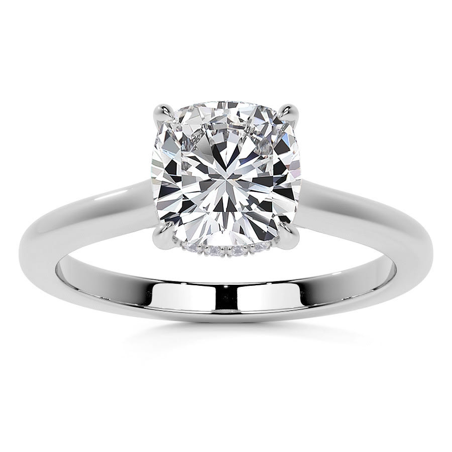 Cushion Cathedral Lab Grown Diamond Engagement Ring with Hidden Halo