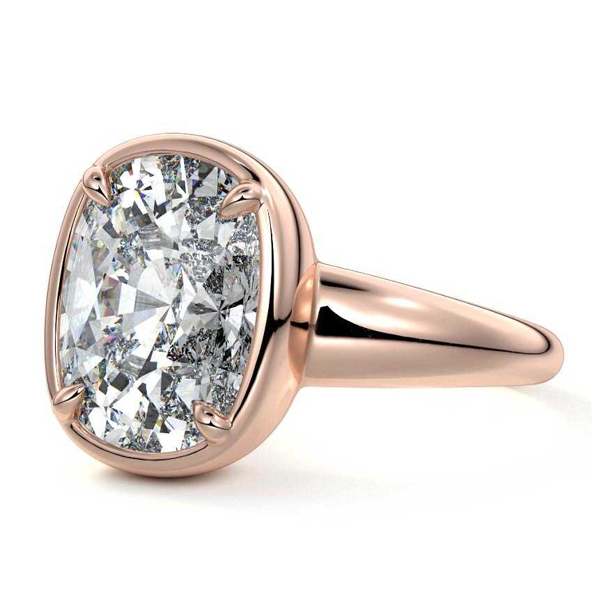 This exquisite solitaire engagement ring showcases a captivating cushion cut lab grown diamond, celebrated for its unique blend of brilliant sparkle and soft, rounded corners. Its sophisticated silhouette is beautifully presented in a minimalist setting on a polished rose gold band, embodying refined elegance.