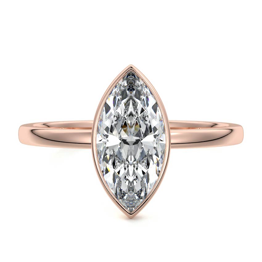 This exquisite solitaire engagement ring features a stunning Marquise cut lab grown diamond, elegantly set in a sleek bezel to highlight its elongated and brilliant sparkle. The classic solitaire design offers timeless sophistication, making it a perfect symbol of enduring love.