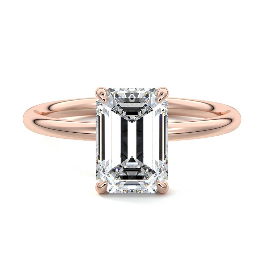 This elegant solitaire engagement ring features a stunning Emerald cut lab grown diamond, renowned for its sophisticated, step-cut facets and captivating 'hall of mirrors' effect. Set on a sleek and minimalist band, this design epitomizes timeless grace and refined beauty.