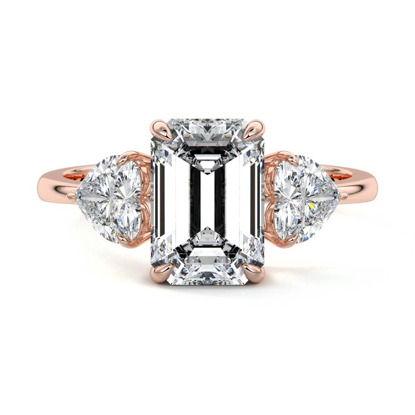 This exquisite engagement ring features a captivating emerald cut lab grown diamond as its impressive center stone. Its clean lines and brilliant step-cut facets create a sophisticated and timeless appeal, complemented by elegant side diamonds for a luxurious look.