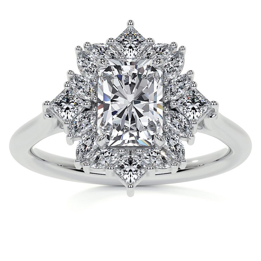 Geometric Halo Radiant Lab Grown Diamond Cathedral Engagement Ring