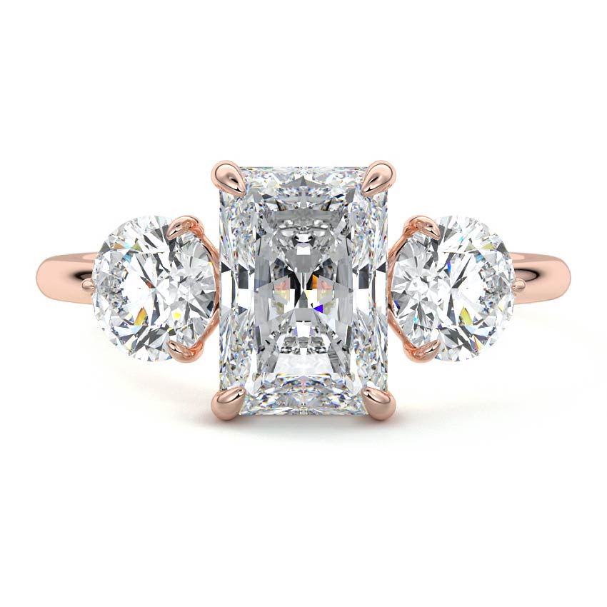 Lab Grown Diamond Three Stone Engagement Ring with Radiant Cut Diamond