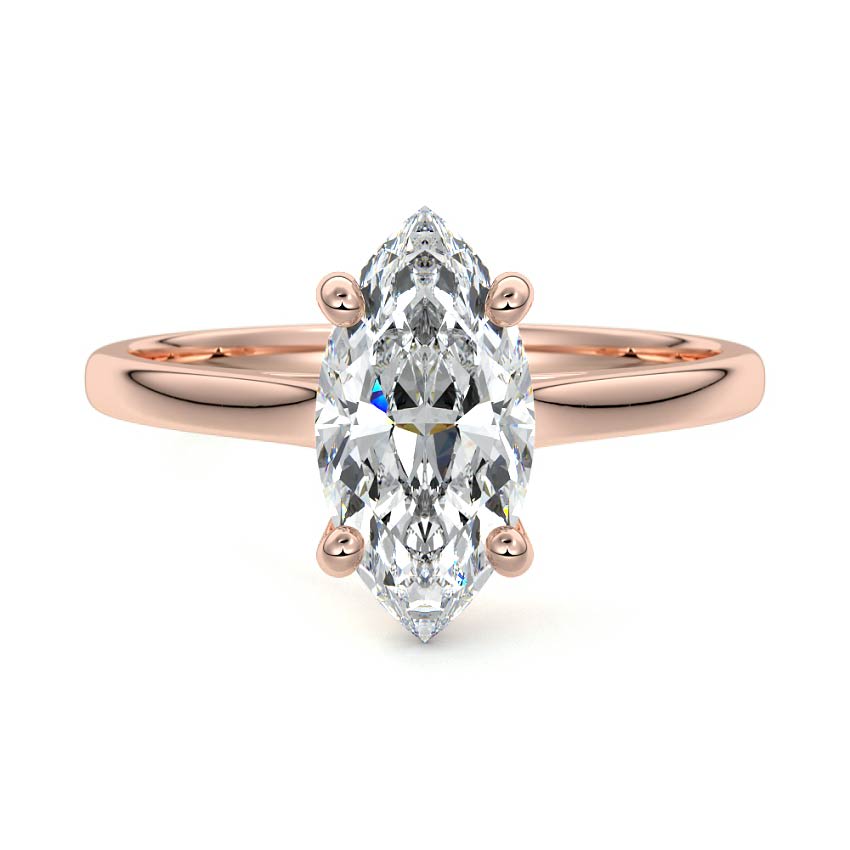 This exquisite solitaire engagement ring features a stunning marquise cut lab grown diamond, captivating with its elongated shape and brilliant sparkle. Set on a sleek and minimalist band, it embodies timeless elegance and sophisticated beauty, making it a perfect symbol of love.