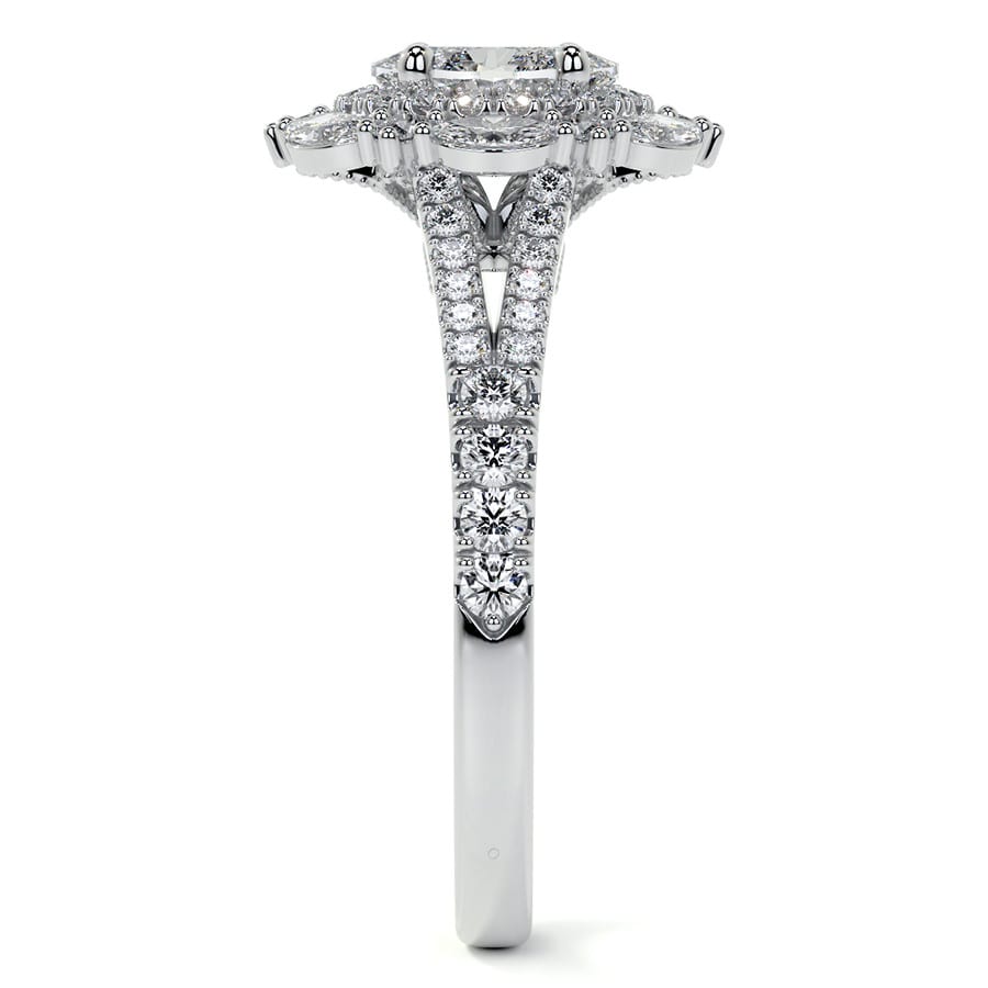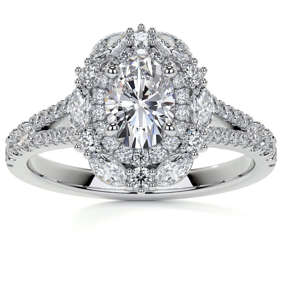 Marquise Halo Split Shank Oval Lab Grown Diamond Engagement Ring
