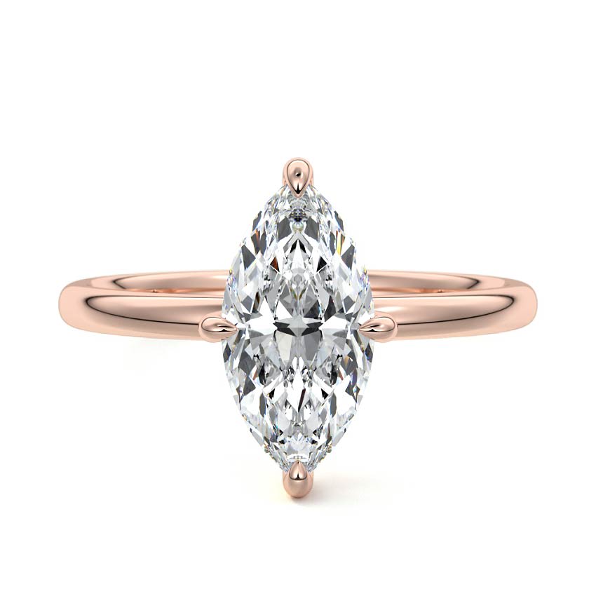 This exquisite solitaire ring features a dazzling marquise cut lab grown diamond, radiating with sophisticated brilliance. Its elongated, eye-catching shape is perfectly showcased by a sleek band, offering a timeless and elegant appeal.