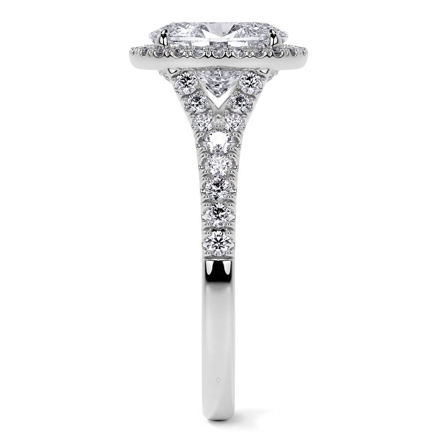 Oval Lab Grown Diamond Split Shank Halo Engagement Ring