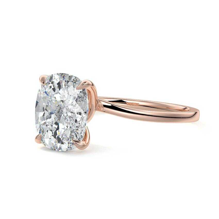Showcasing a breathtaking Oval cut lab grown diamond, this solitaire engagement ring embodies timeless sophistication. Its gracefully elongated silhouette is perfectly complemented by a sleek rose gold band, creating a piece of enduring beauty and understated luxury.