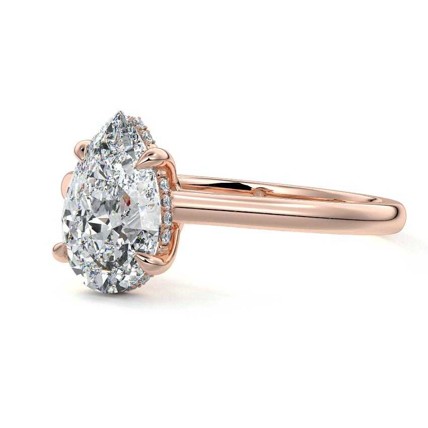 Pear Cut Diamond Hidden Halo Engagement Ring Exquisite Design