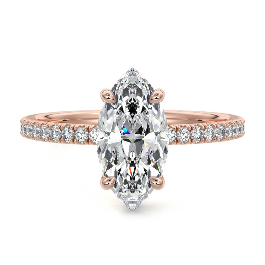 This exquisite engagement ring features a stunning Pear cut lab grown diamond, elegantly set on a delicate pave band. Its unique teardrop shape and brilliant sparkle embody graceful elegance for a truly captivating statement.