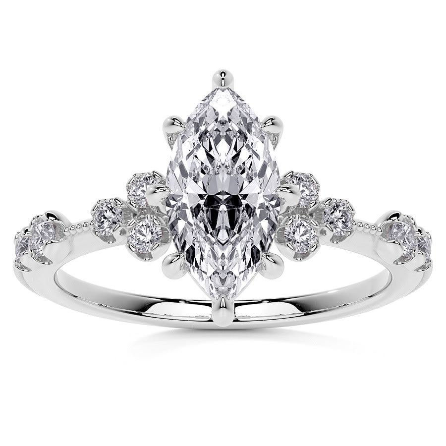 Petite Marquise and Round Brilliant Lab Grown Diamond Engagement Ring with Milgra