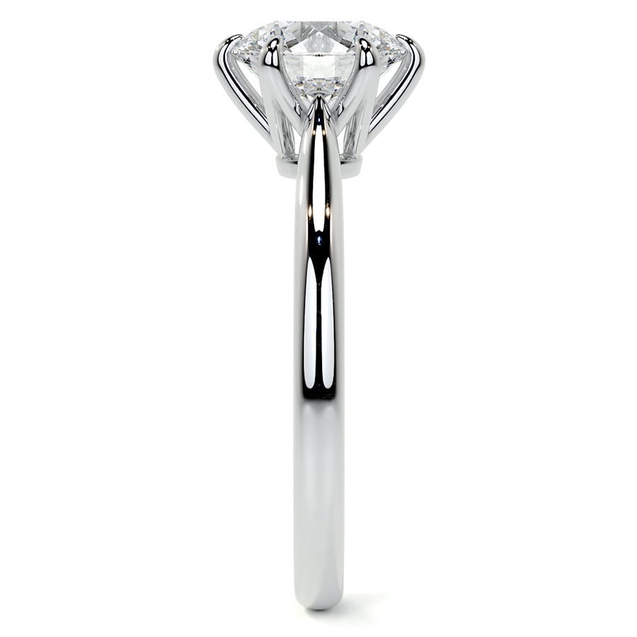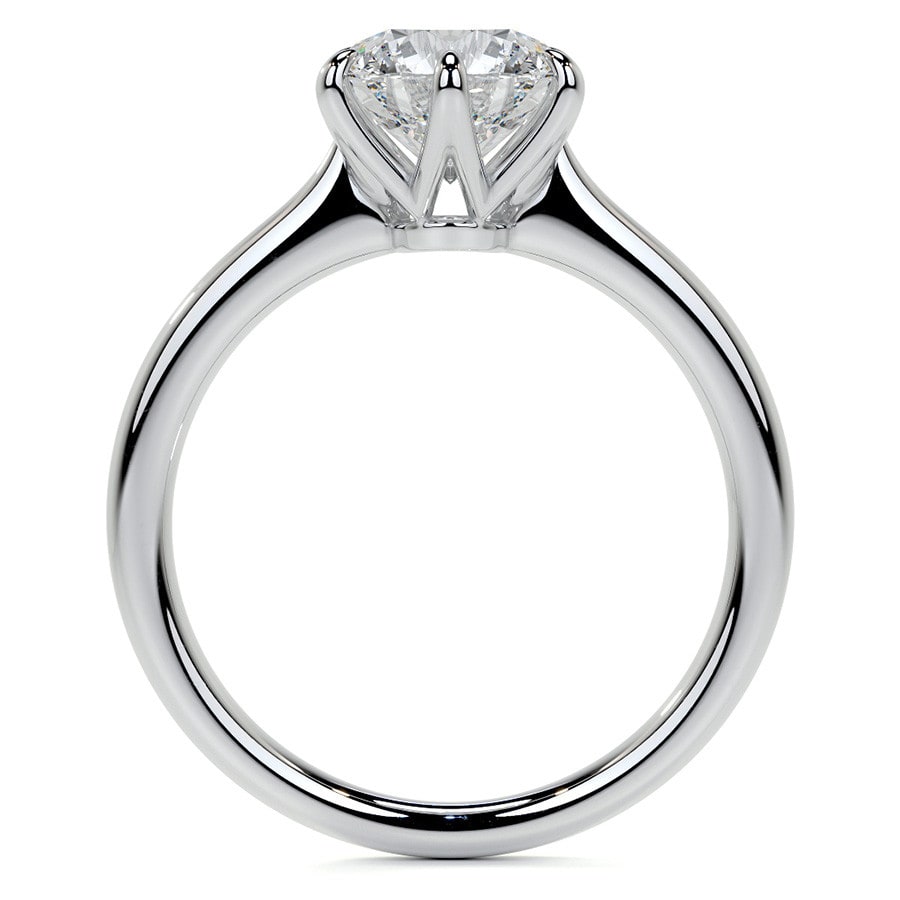 This exquisite solitaire engagement ring showcases a breathtaking round cut lab grown diamond, celebrated for its unparalleled brilliance and classic appeal. The elegant and simple band accentuates the magnificent center stone, creating a design that is both timeless and sophisticated.