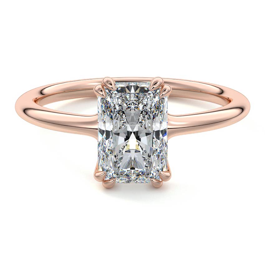 Showcasing a breathtaking Radiant cut lab grown diamond, this exquisite solitaire engagement ring embodies modern sophistication. Its brilliant facets capture and reflect light with dazzling intensity, set upon a sleek and minimalist band for timeless elegance.