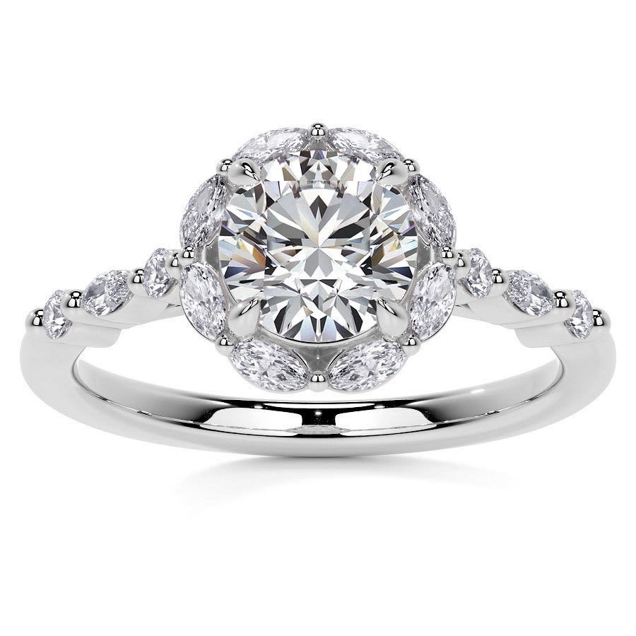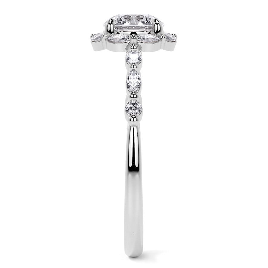 Round and Marquise Halo Lab Grown Diamond Cathedral Engagement Ring