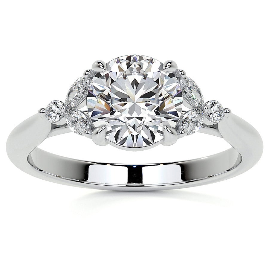 Round and Marquise Lab Grown Diamond Cathedral Engagement Ring
