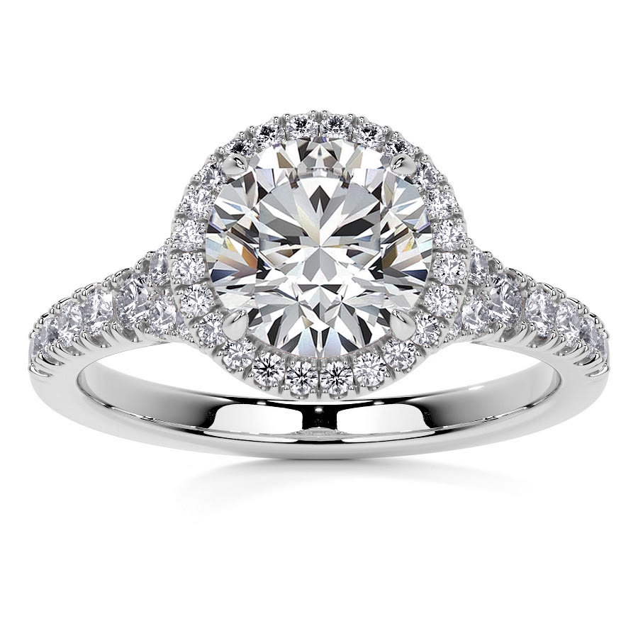 Round Brilliant Lab Grown Diamond Split Shank Halo Engagement Ring