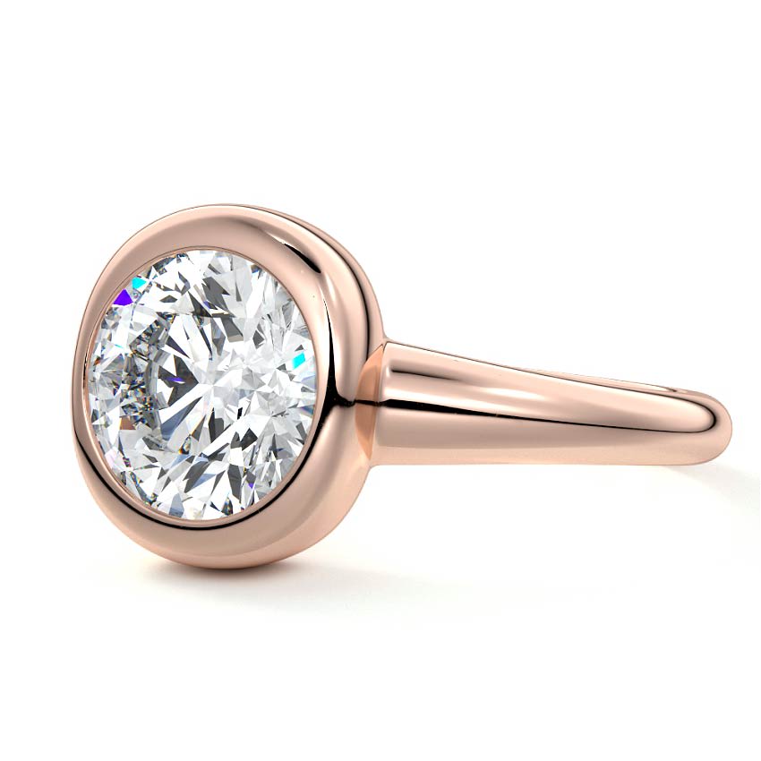 Showcasing a brilliant Round cut lab grown diamond, this Solitaire ring exudes classic elegance. Its smooth bezel setting highlights the stone's perfect circular outline, offering a sleek and modern take on a beloved design.