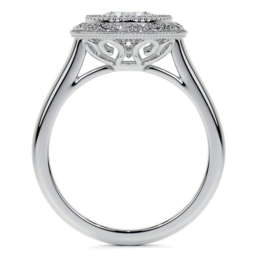 Round Engraved Halo Lab Grown Diamond Engagement Ring with Milgrain
