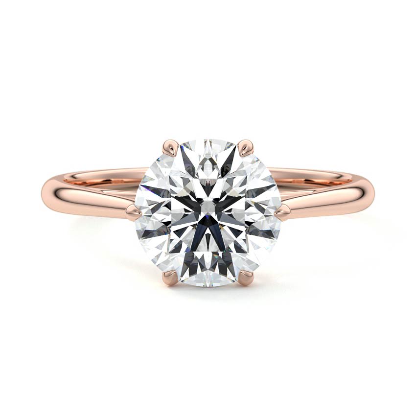 This exquisite solitaire engagement ring features a stunning round brilliant cut lab-grown diamond, celebrated for its unparalleled fire and sparkle. Set in a sleek rose gold band, its classic design embodies timeless elegance and refined simplicity.
