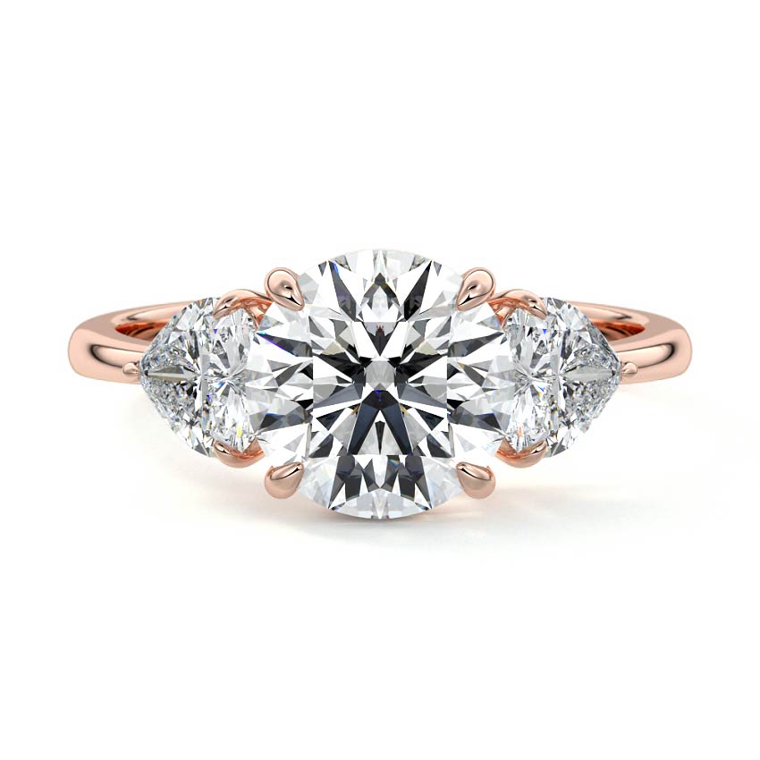 This exquisite three-stone engagement ring features a dazzling Round cut lab grown diamond center stone, perfectly complemented by two brilliant companion stones. Set on a sleek band, this design offers timeless elegance and profound symbolism.
