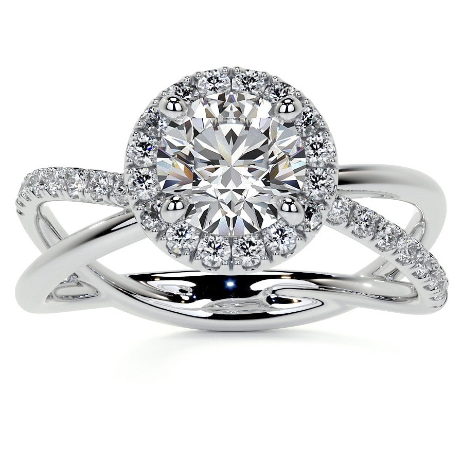 Round Trellis Split Shank Lab Grown Diamond Engagement Ring with Halo