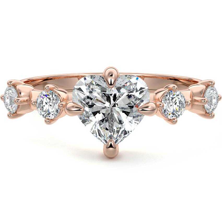 This enchanting ring features a captivating Heart cut lab grown diamond, radiating with romantic charm. Adorned with delicate sidestones gracefully set along the rose gold band, it symbolizes a love story beautifully told.