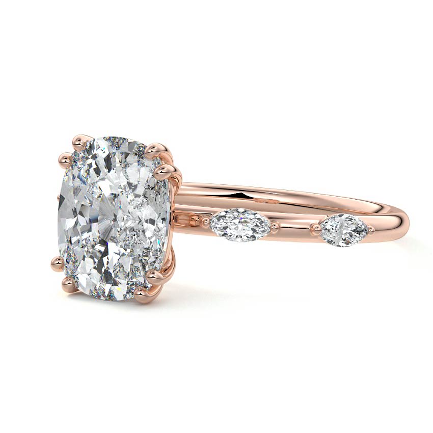 This captivating engagement ring features a magnificent Oval cut lab grown diamond, renowned for its elongated elegance and brilliant sparkle. Accented by delicate marquise sidestones on the refined rose gold band, this design offers a sophisticated and unique take on classic romance.