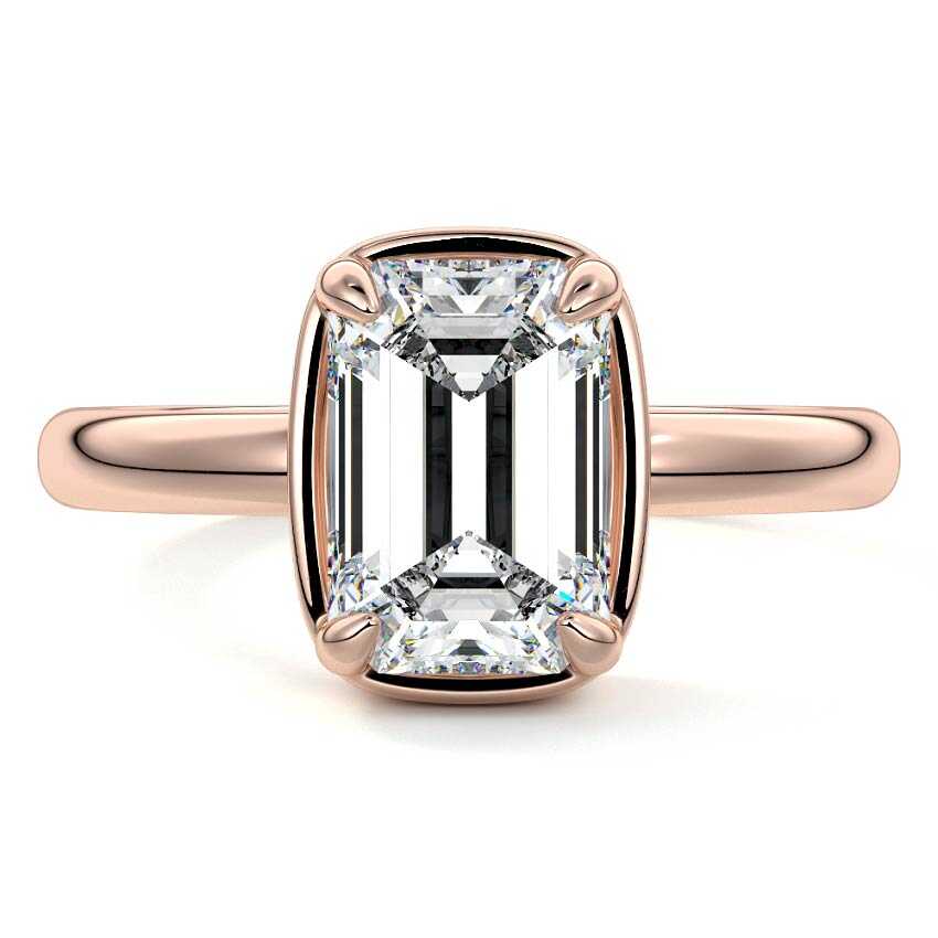 Embrace timeless sophistication with this exquisite Solitaire Emerald Cut Lab Grown Diamond Engagement Ring. Its captivating step-cut facets create a mesmerizing 'hall of mirrors' effect, elegantly framed by a sleek and minimalist rose gold band.