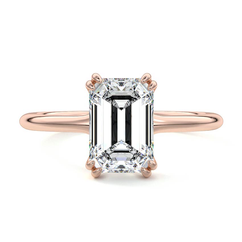 Experience timeless sophistication with this exquisite solitaire engagement ring. It features a stunning Emerald cut lab-grown diamond, celebrated for its unique step-cut facets and elegant rectangular silhouette, set gracefully on a simple, polished band.