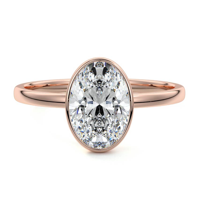 This exquisite solitaire engagement ring features a stunning oval cut lab grown diamond, captivating with its elongated brilliance. Set in a sleek, minimalist bezel setting, this ring embodies contemporary elegance and timeless sophistication.