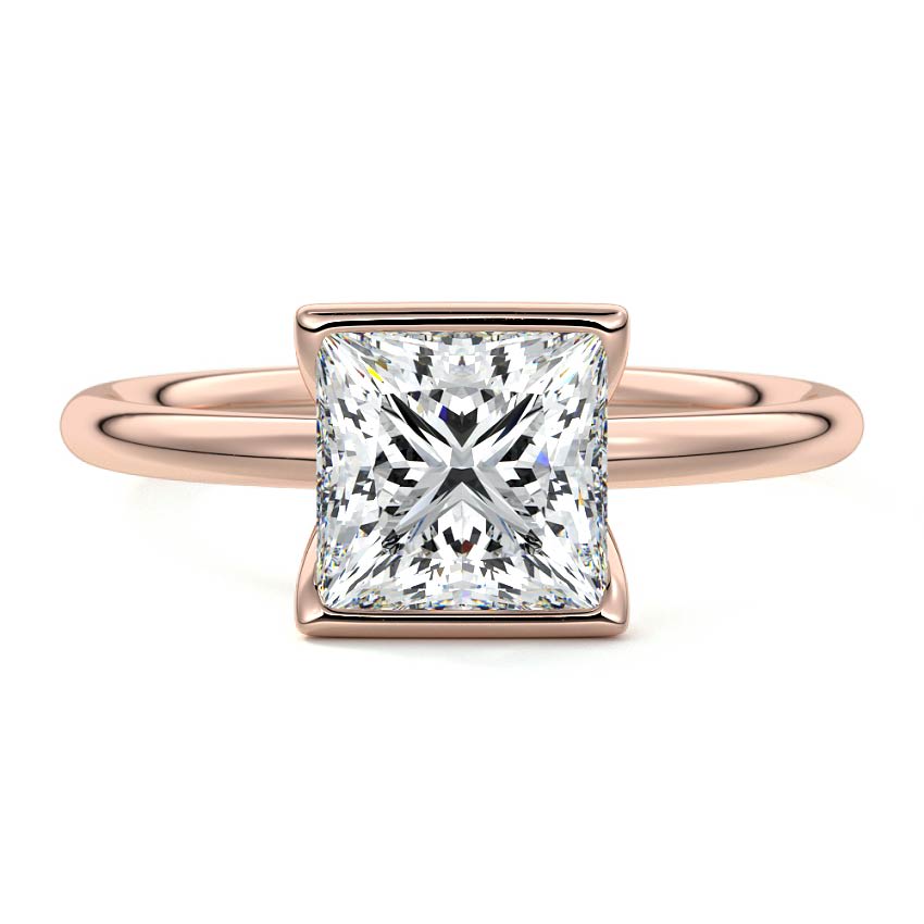 This stunning solitaire engagement ring showcases a brilliant Princess cut lab grown diamond, perfectly defined by its sharp, pointed corners. Encased in a contemporary bezel setting, its clean lines and geometric appeal create a sophisticated and modern statement of enduring love.