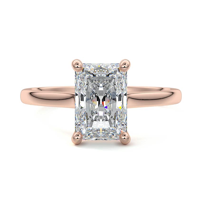 Adorn your finger with this exquisite solitaire radiant cut lab grown diamond engagement ring, showcasing exceptional brilliance. The elongated rectangular silhouette with subtly cropped corners offers a modern yet timeless appeal, perfectly complemented by the sleek rose gold band for a sophisticated statement.