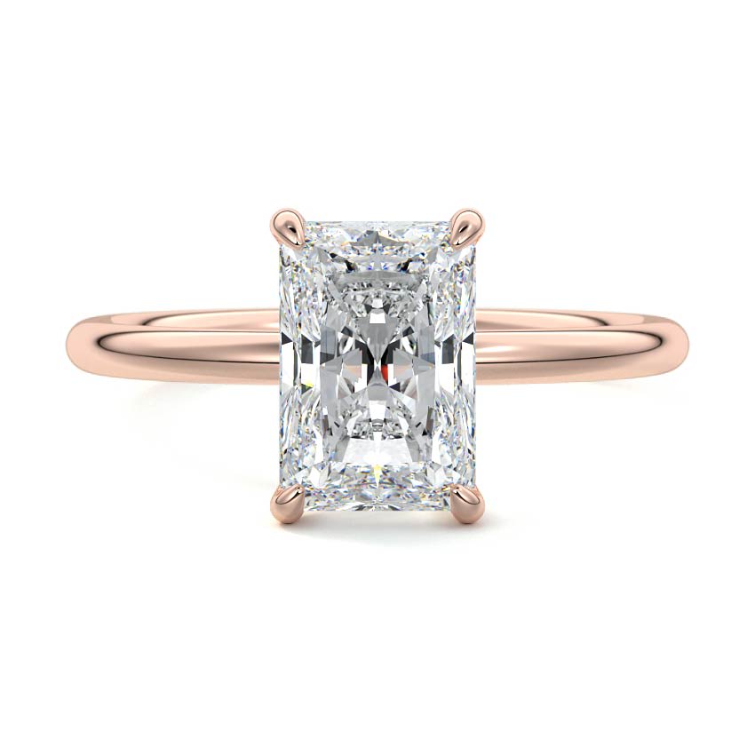 Experience modern sophistication with this stunning solitaire engagement ring, featuring a brilliant radiant cut lab grown diamond. Its sleek design highlights the captivating sparkle of the center stone, set on a polished band.