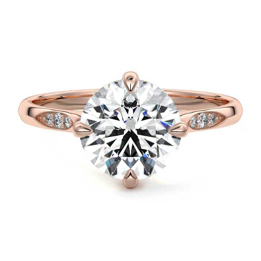 This exquisite solitaire engagement ring showcases a brilliant round cut lab grown diamond, gracefully set on a rose gold band adorned with delicate sidestone accents. A perfect blend of classic elegance and understated sparkle.