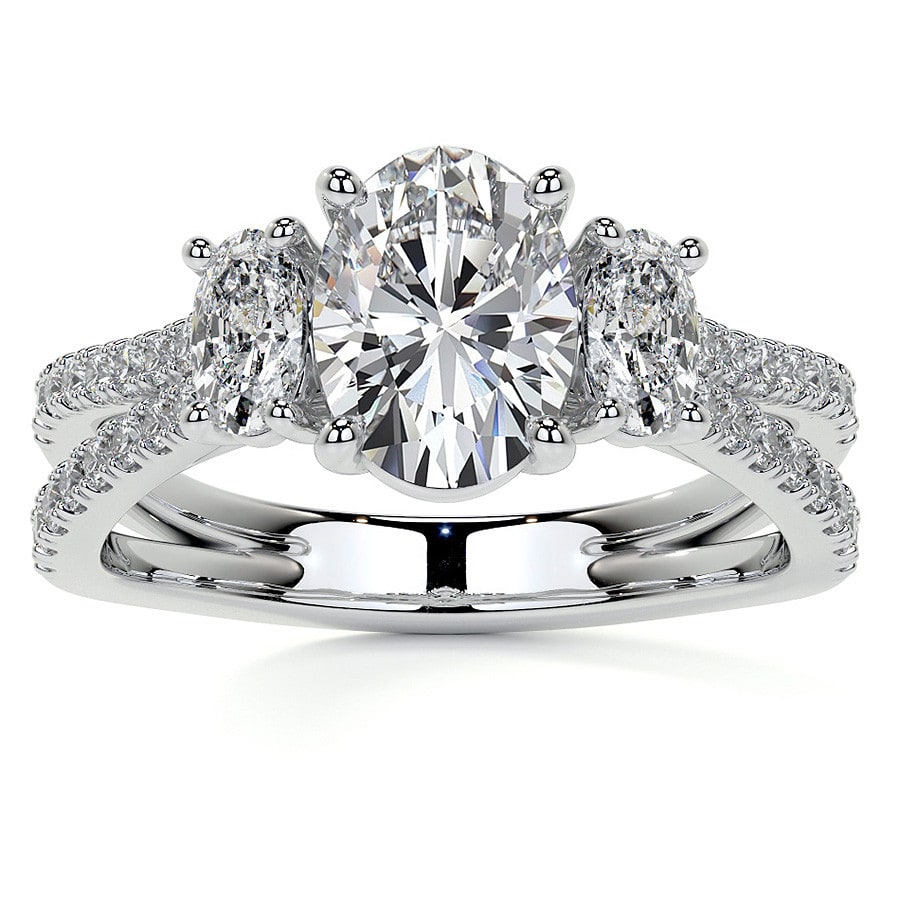 Split Shank Oval Three-Stone Lab Grown Diamond Engagement Ring