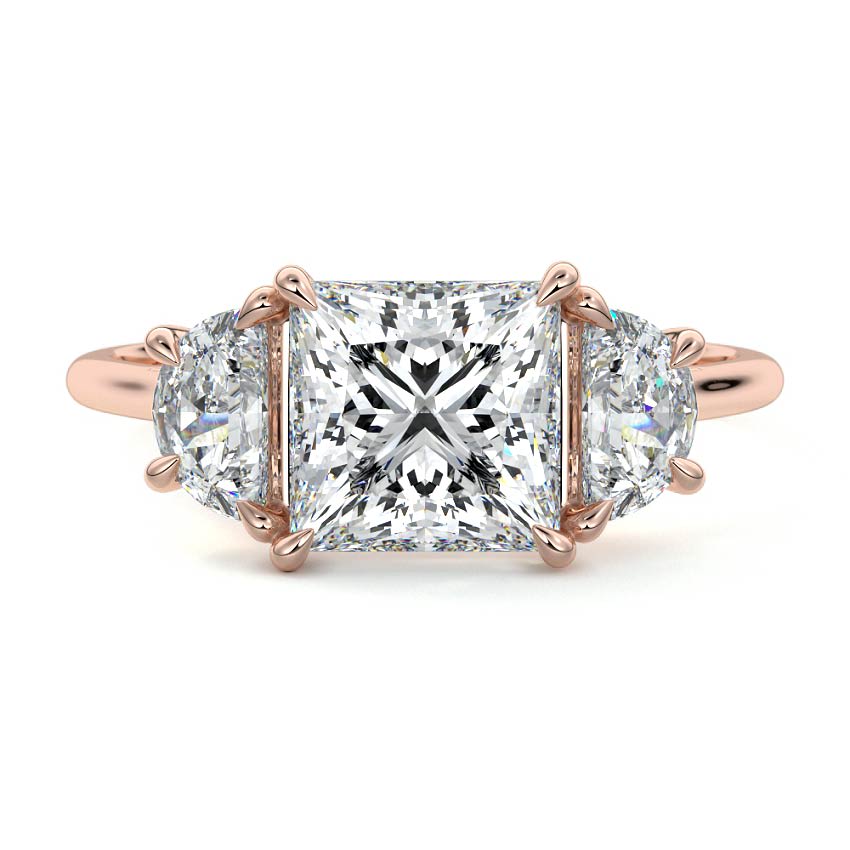 Three Stone Princess Cut Lab Grown Diamond Engagement Ring Perfect Beauty