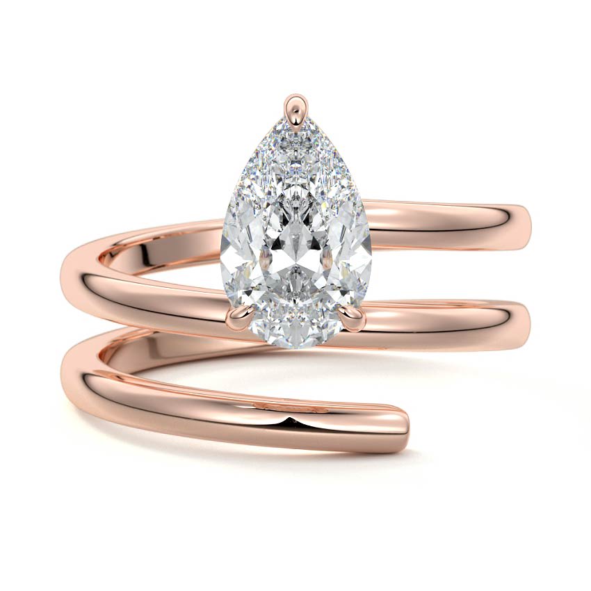 Featuring a captivating Pear cut lab grown diamond, this engagement ring boasts a unique twisted rose gold band that elegantly embraces the finger. This modern solitaire design offers a distinct and sophisticated appeal for those seeking a contemporary look.